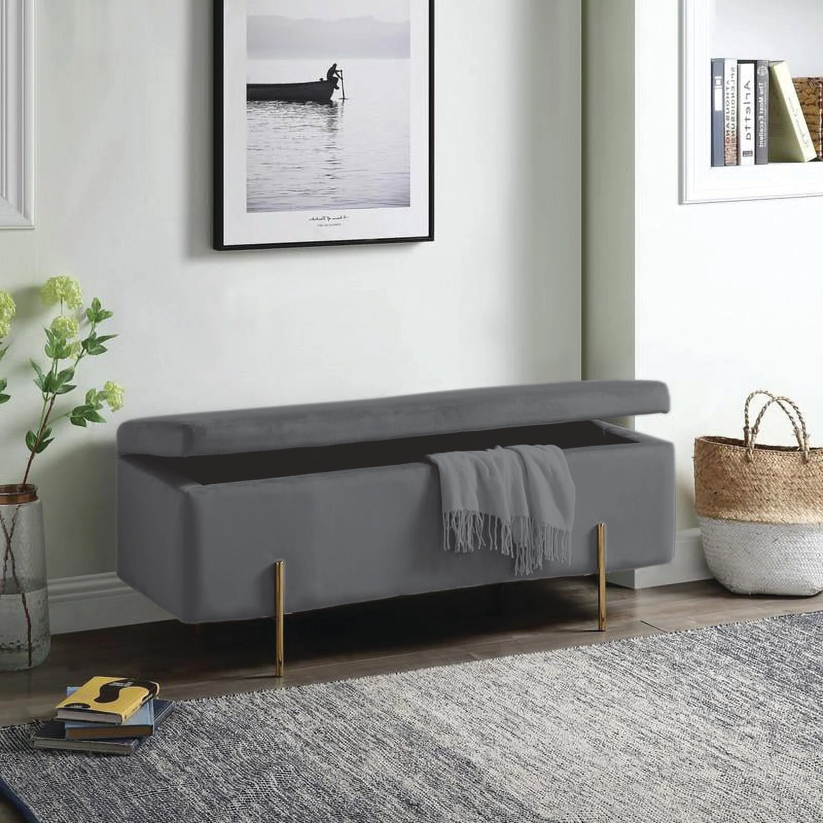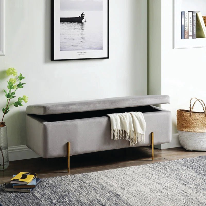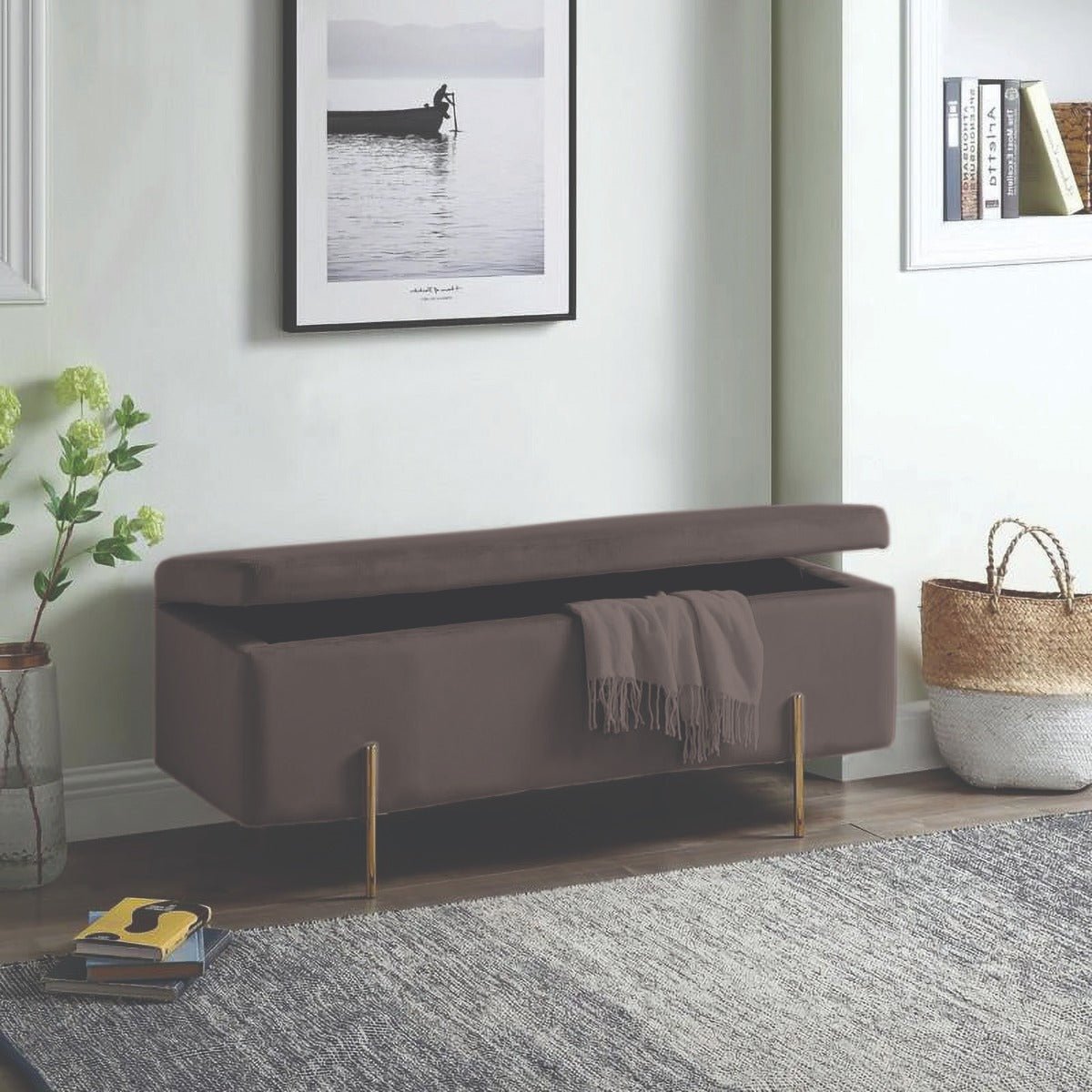 Atelier Du Nord - Velvet Storage Bench With Gold Metal Leg