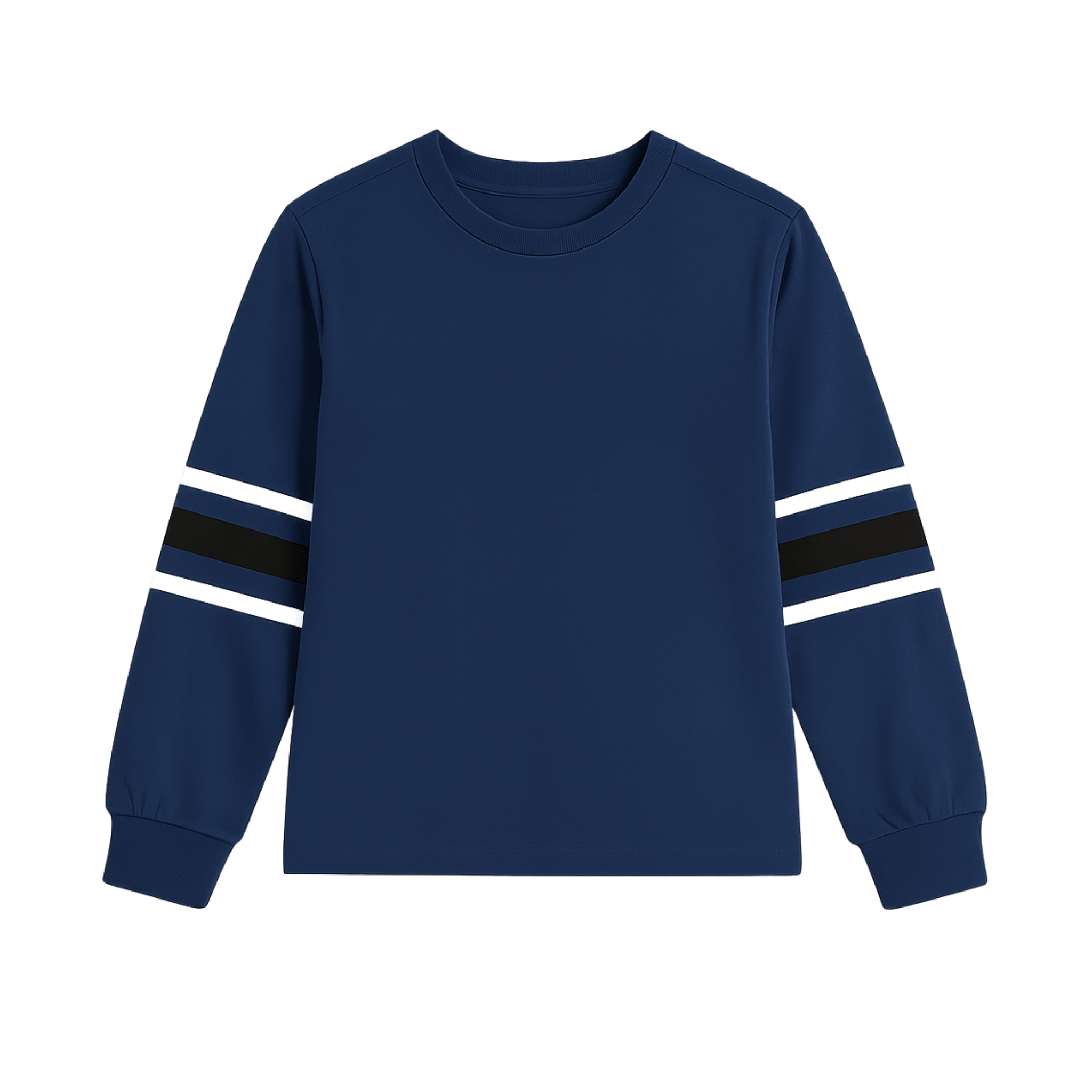 Sporty and stylish, this boys’ crewneck sweatshirt is a must-have for cool-weather days. Made from a soft and durable cotton-blend fabric, it offers lasting comfort and warmth. The contrasting stripe detail on the sleeves adds a fun, athletic touch, while the ribbed cuffs and hem ensure a snug fit. Easy to pair with jeans, joggers, or shorts, this sweatshirt is perfect for school, playtime, or weekend adventures.