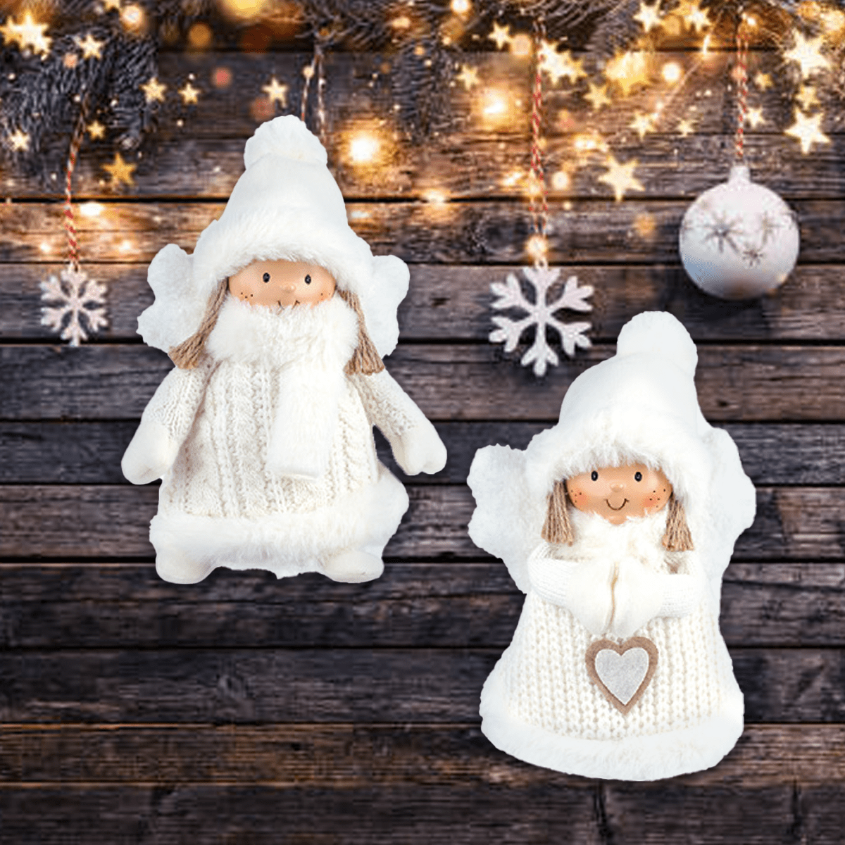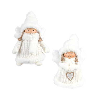 Fabric Standing Angel With Knit Sweater And Fur