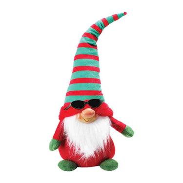The 43cm fabric standing Santa gnome with sunglasses is a fun and quirky twist on the traditional holiday decor. This jolly gnome brings a touch of whimsy and personality to your Christmas display with his unique style. The addition of sunglasses adds a modern and playful element to this classic character, making him stand out in your seasonal decorations. Perfect for adding a fun and festive vibe to your home, this fabric standing Santa gnome is sure to bring smiles and joy to all who see him.