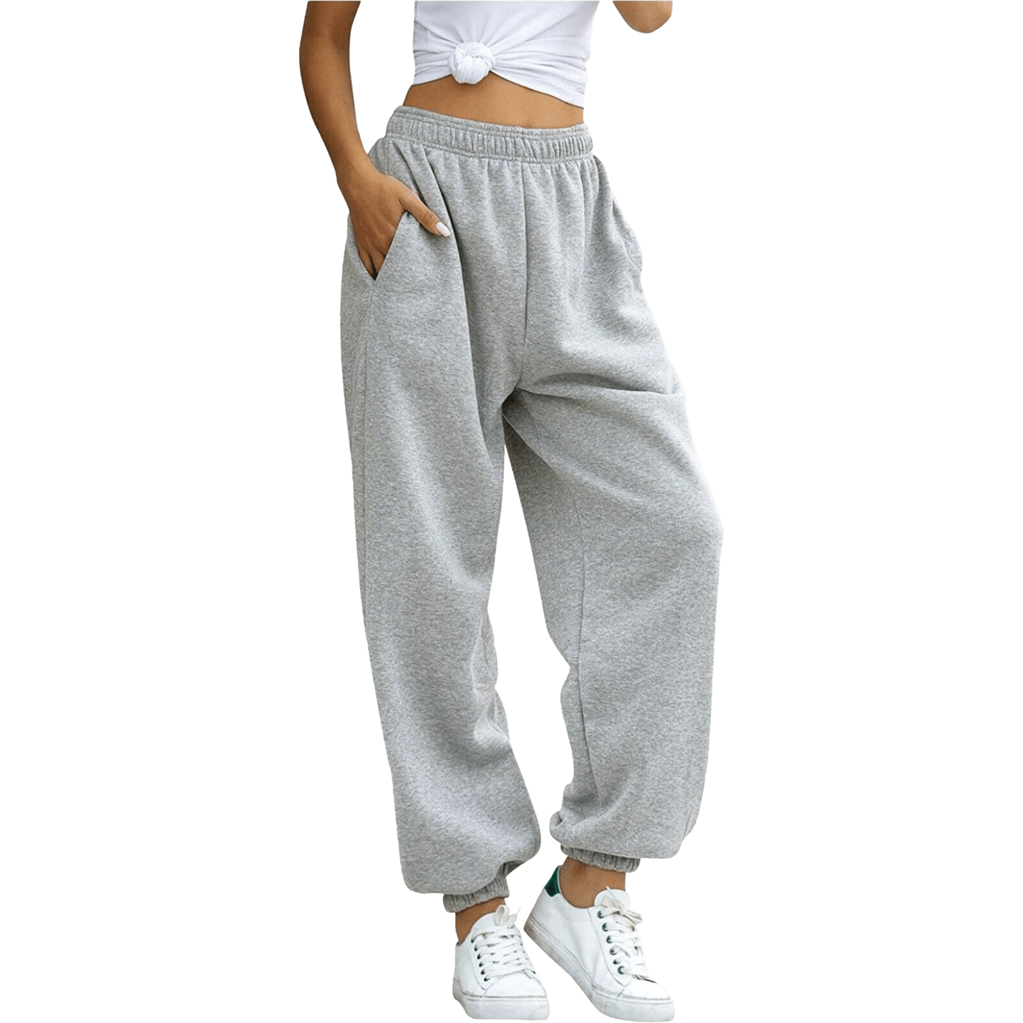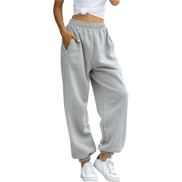 Rediscover comfort with these grey high-waisted relaxed jogger sweatpants—your new go-to for effortless everyday style. Crafted from a soft, cozy fleece blend, they offer a loose, laid-back fit that moves with you. The elastic waistband and cuffed jogger-style ankles provide a secure, comfortable feel, while the side pockets add practical convenience. Perfect for lounging at home, running errands, or pairing with a fitted top for a trendy athleisure look.