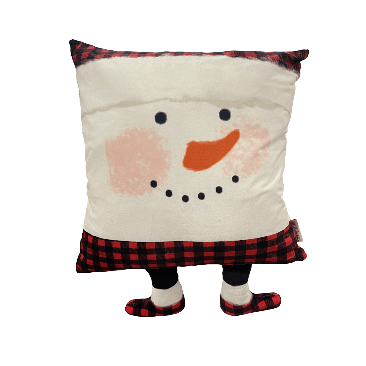 Frosty W/dangling Feet Square Cushion Red Plaid 18x18