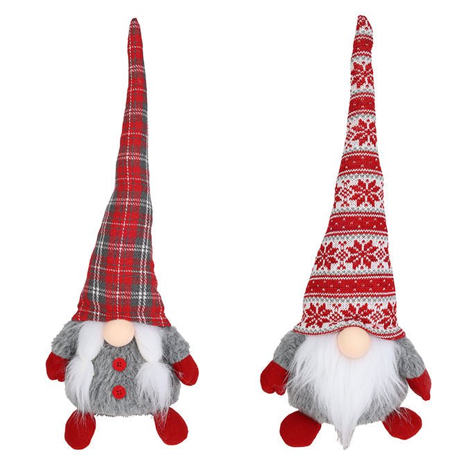 Fabric Sitting Santa Gnome with Knit Hat – 45cm (2 Assorted: Grey/Red)