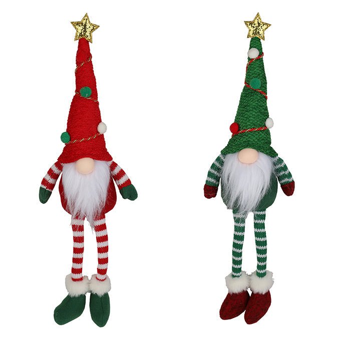 Fabric Hanging Legs Santa Gnome with Decorated Hat – 40cm (2 Assorted: Red/Green & Green/Red)