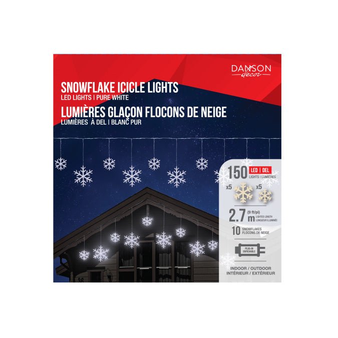 Snowflake Icicle LED Lights – Cool White (150 Count)