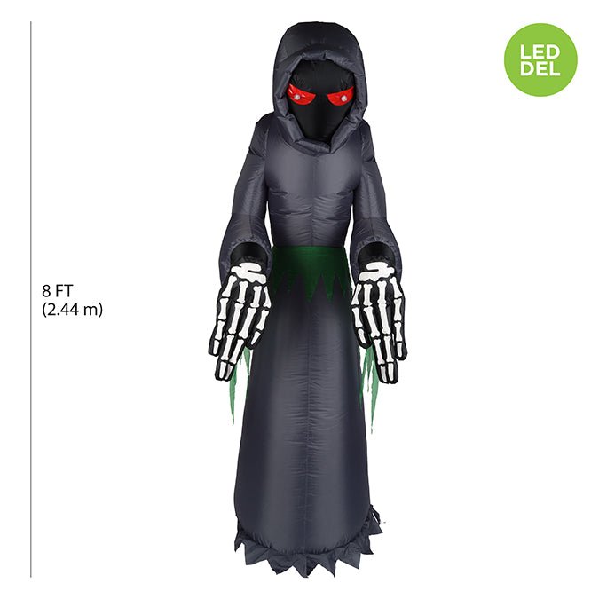 - INFLATABLE LIGHT-UP LED GRIM REAPER WITH RED EYES, 2.44m TALL