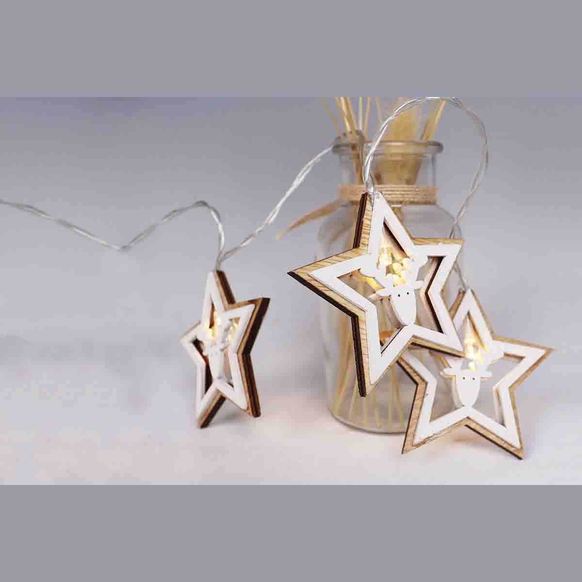10 PCS LIGHT CHAIN WITH WOODEN STAR WITH REINDEER HEAD