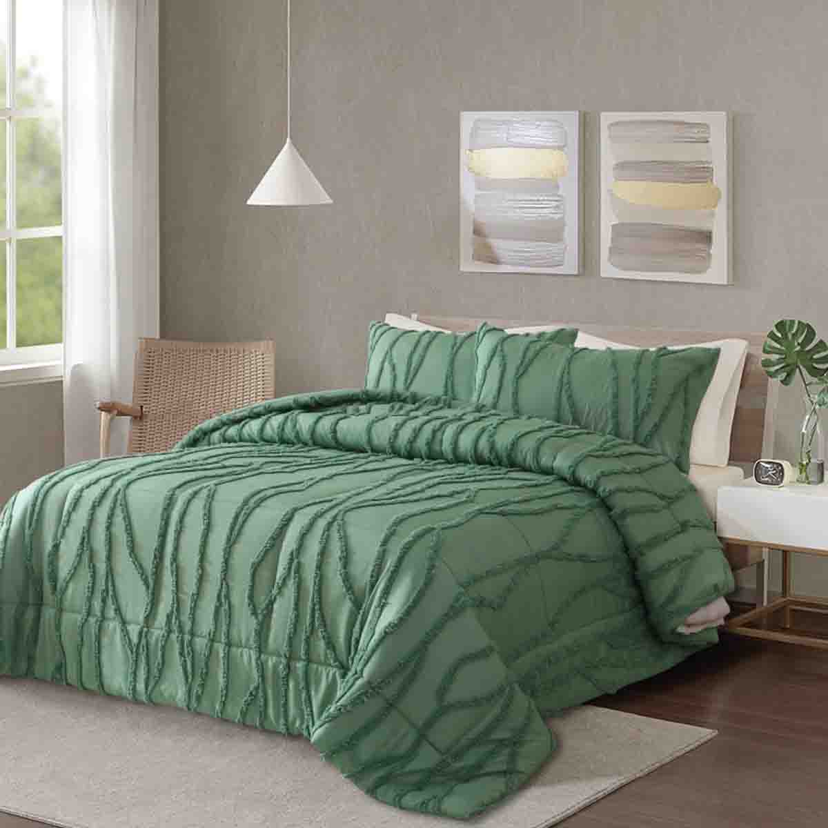 The NOLA Tufted Jacquard 3 PCS Comforter Set by Lauren Taylor brings a touch of luxury to your bedroom. Crafted from high-quality materials, the NOLA Jacquard set provides both elegance and comfort for a restful night's sleep.This Comforter Set is available in two different sizes, which typically include Queen and King.