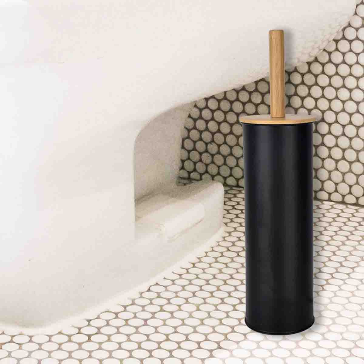 Toilet Cleaner Metal With Bamboo Lid