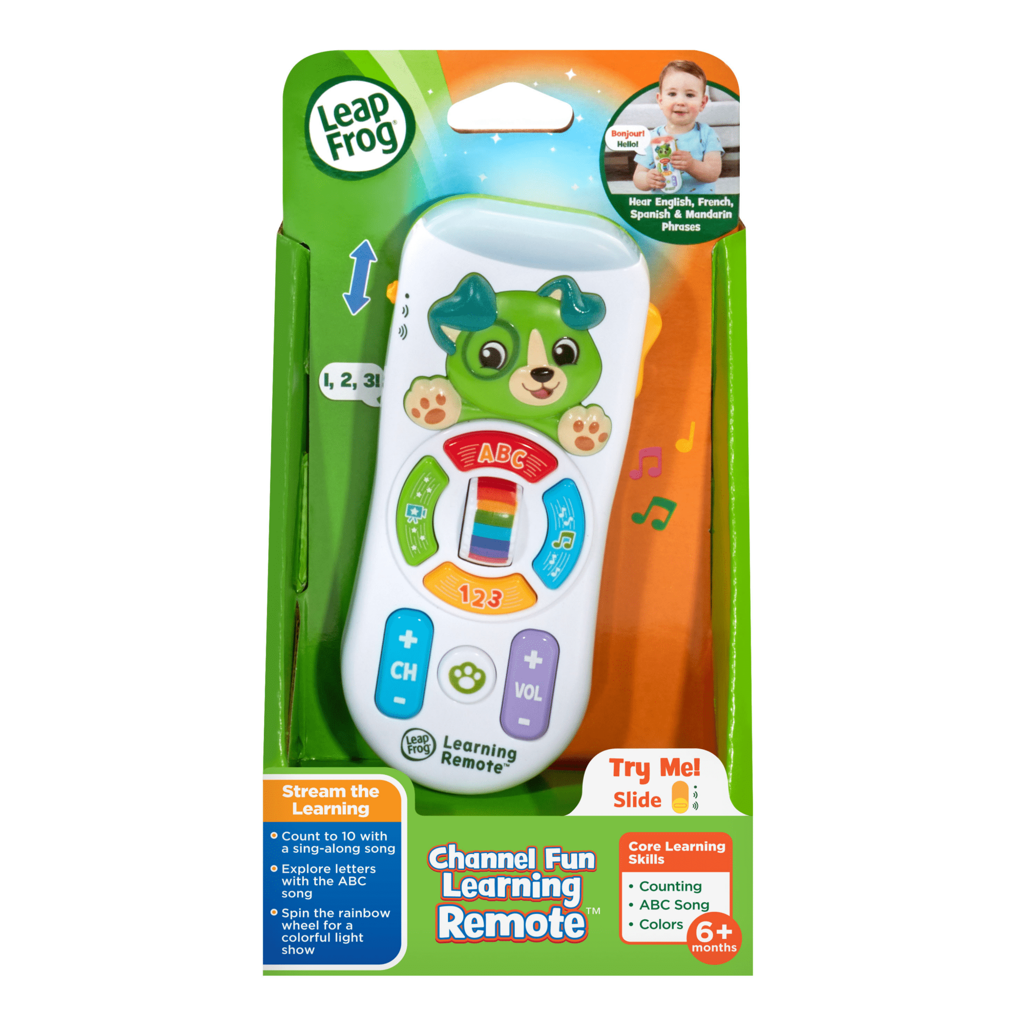 The LeapFrog Channel Fun Learning Remote is an educational toy designed to mimic the functionality of a TV remote control.It is designed to encourage interactive play and can aid in early learning and development by introducing basic educational concepts in an engaging and entertaining manner.