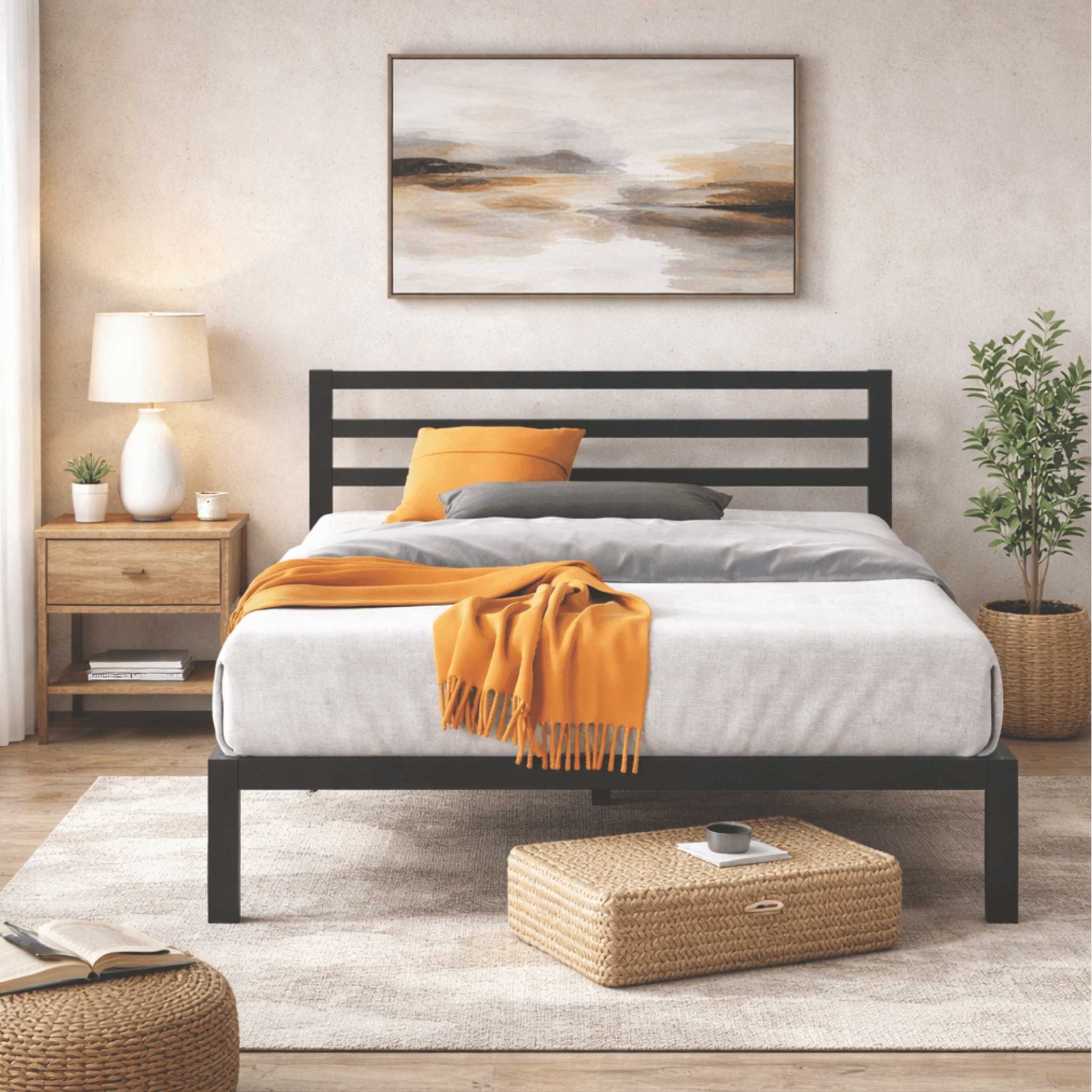 Mia Metal Platform Bed Frame with Headboard – 14" Design