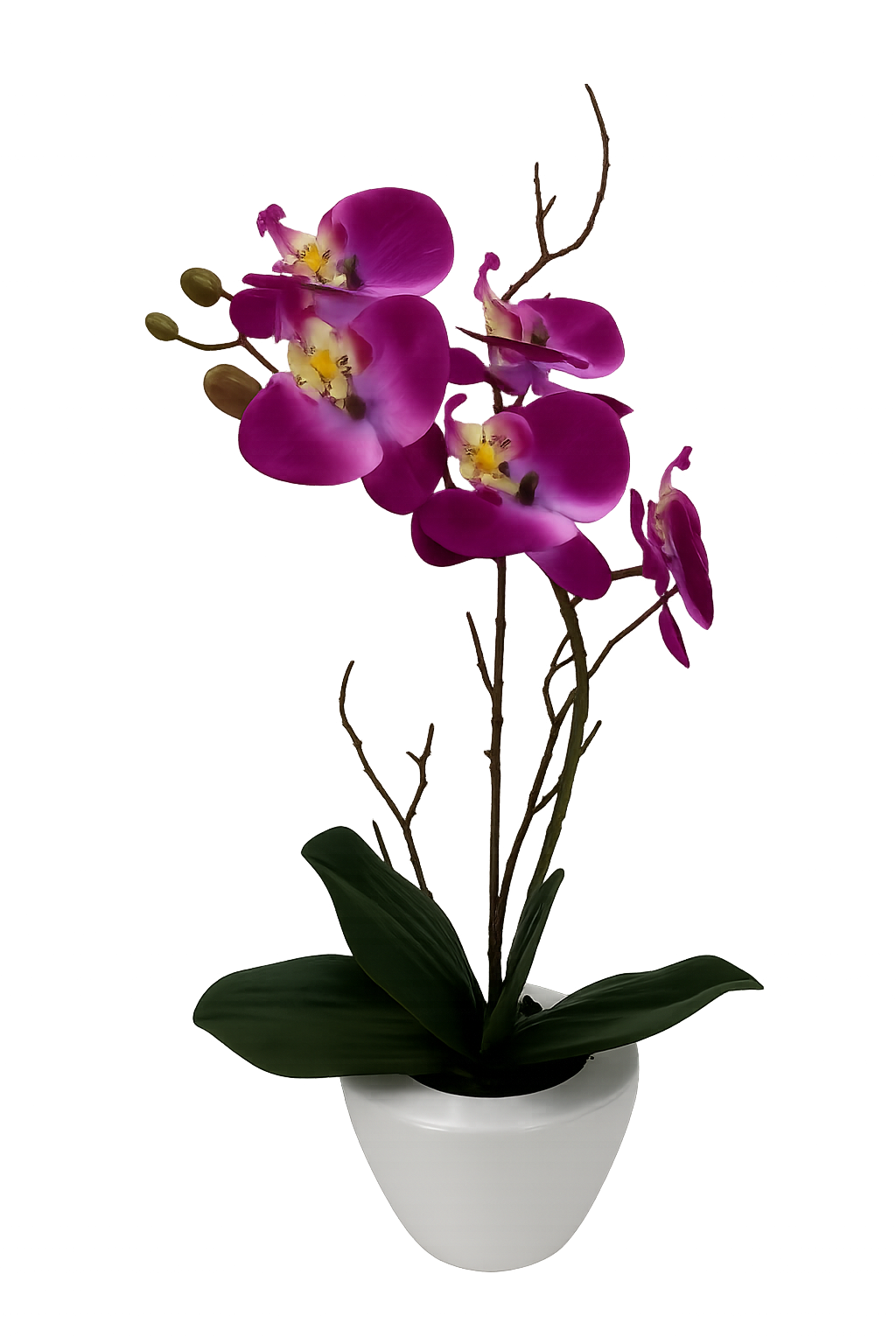 Add a pop of color and elegance to your home with this realistic artificial orchid.