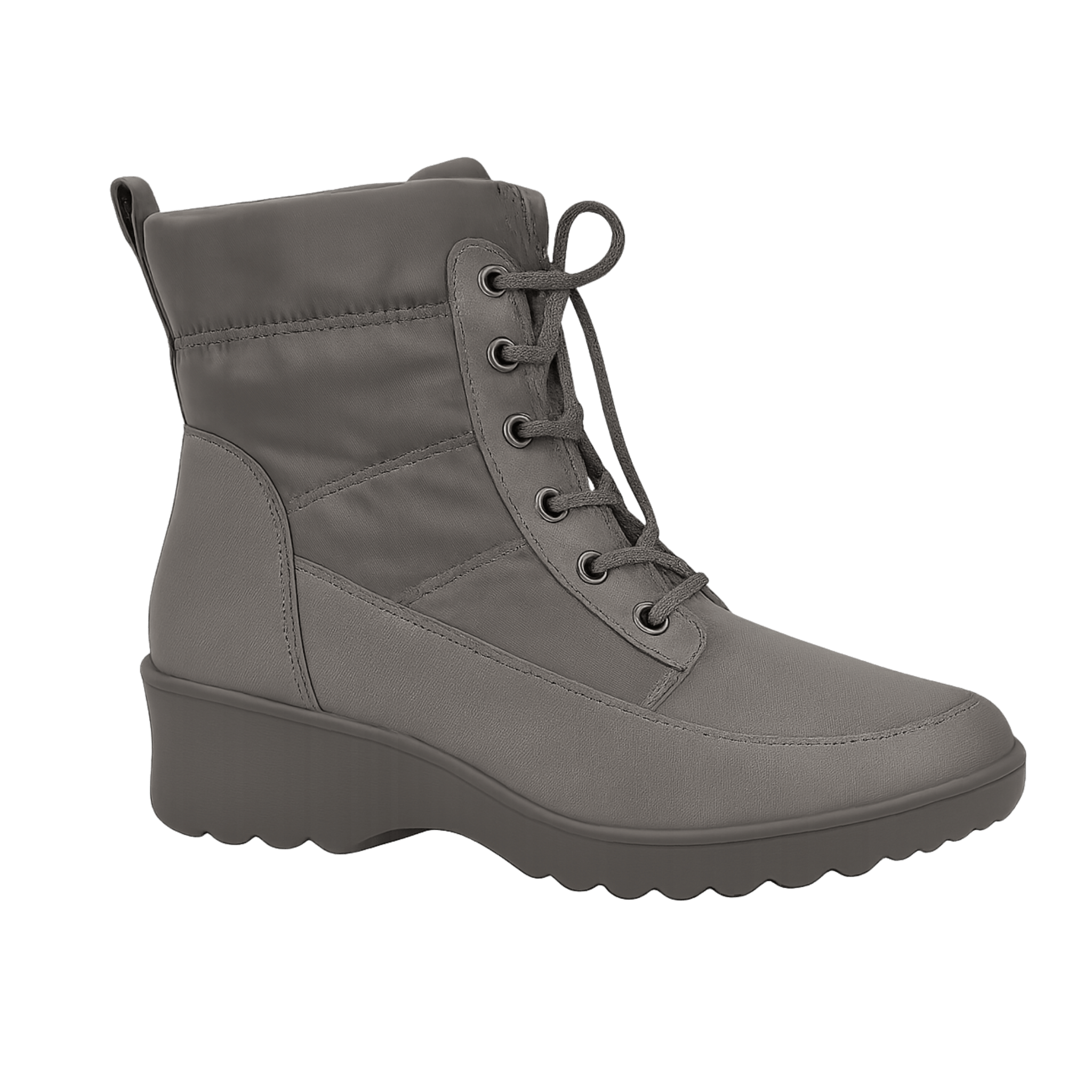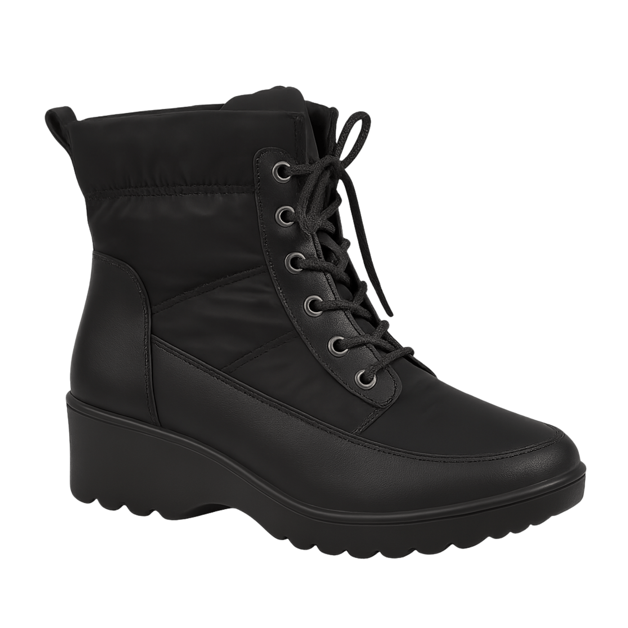Step into the season with these quilted lace-up winter ankle boots, designed to offer warmth, comfort and modern practicality. Crafted with a smooth, weather-resistant exterior and a softly padded shaft, they provide a snug fit perfect for everyday wear. The lightweight wedge sole adds subtle height while ensuring stable traction on varied surfaces. Whether you’re running errands or heading out for a casual day, these boots combine effortless style with dependable comfort.