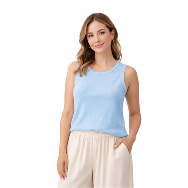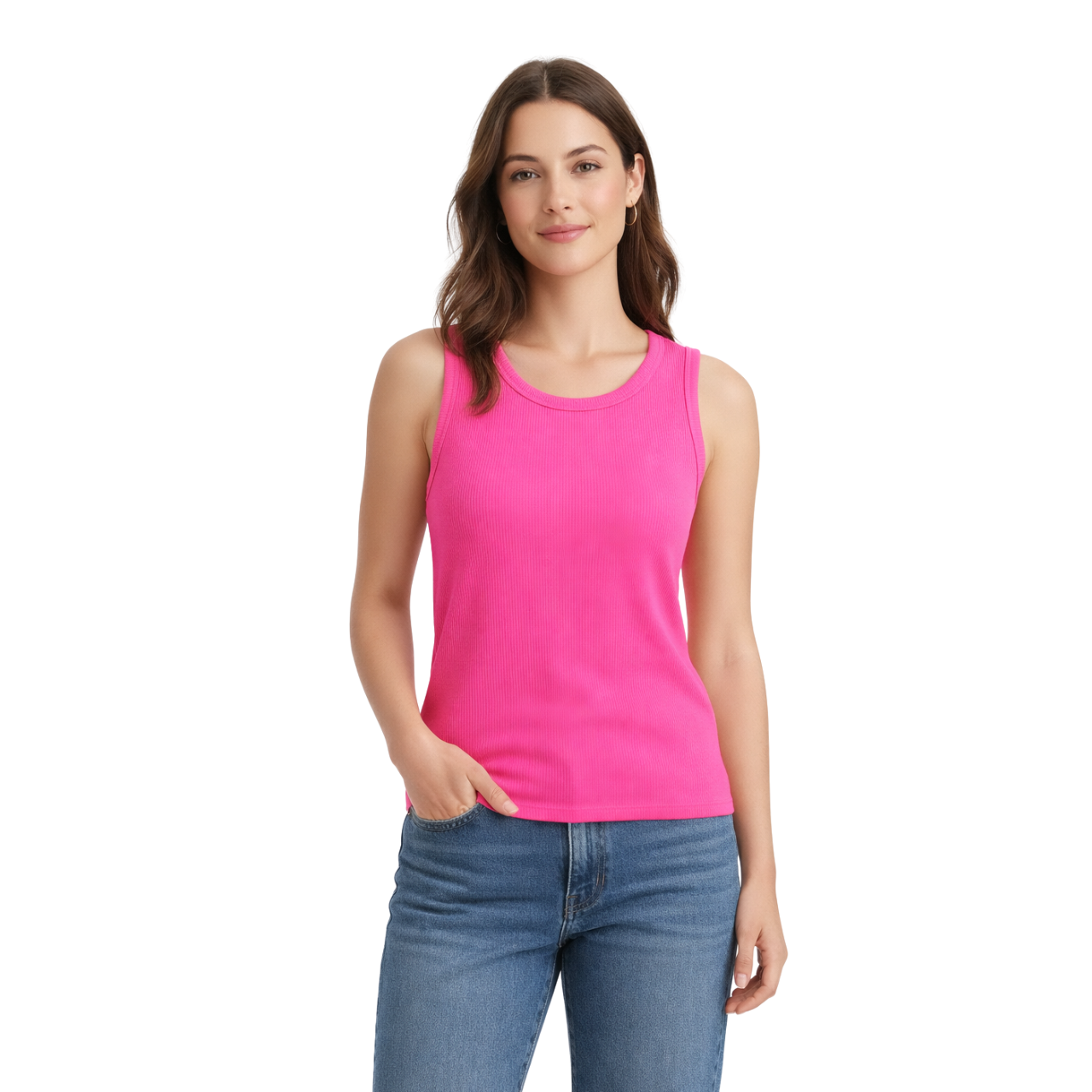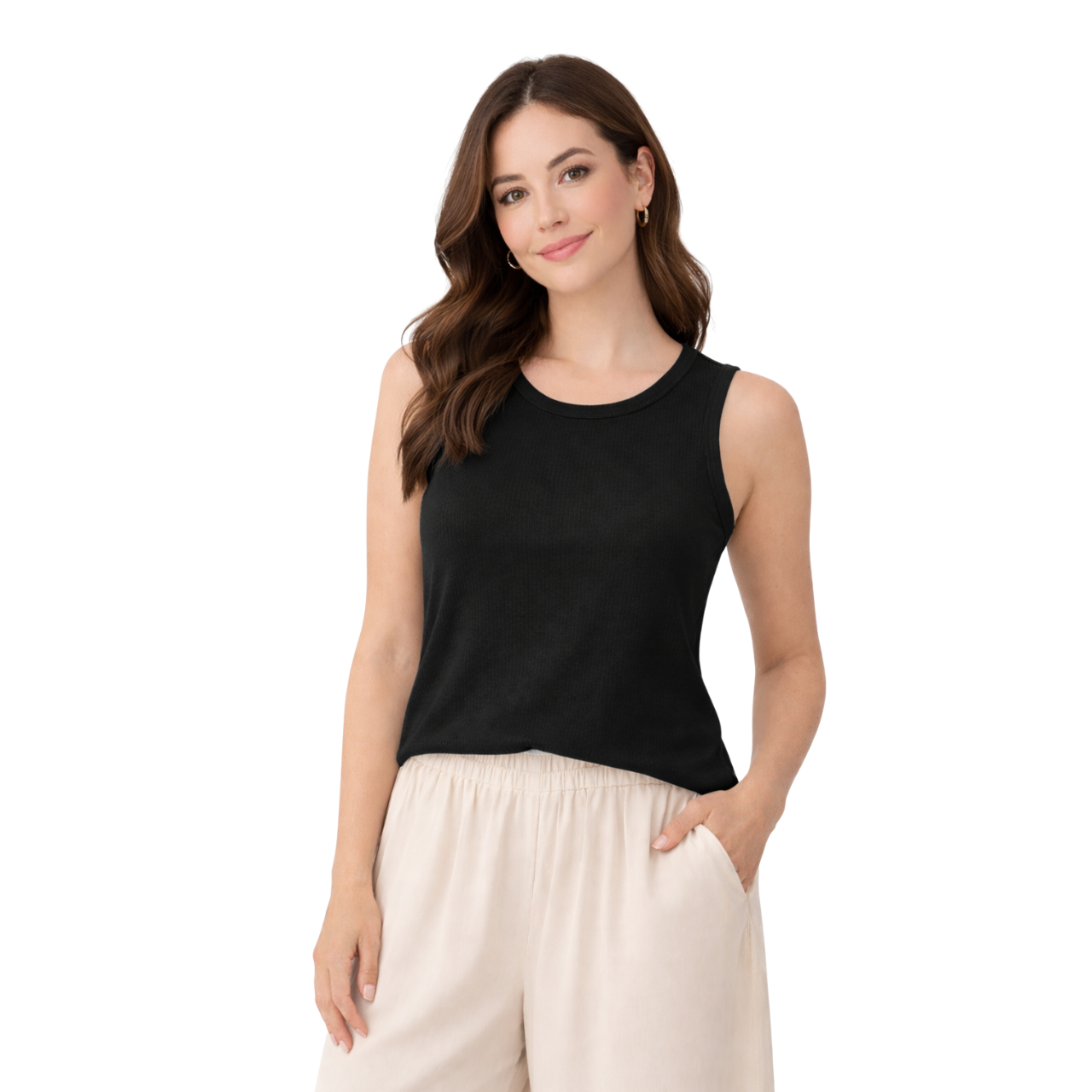A modern staple designed for effortless styling, this ribbed sleeveless tank top blends comfort with a sleek, feminine silhouette. Crafted from a soft stretch fabric, it gently contours the body while offering breathable, all-day wear. Its minimalist crew neckline and clean finish make it perfect for layering or wearing solo. Available in versatile shades, it pairs seamlessly with tailored pants, denim, or relaxed essentials.