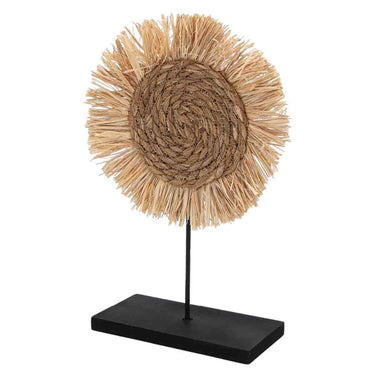 The Seagrass Circle on Metal Stand, standing at 14 inches in height, is a distinctive and visually appealing decorative piece that can enhance the aesthetics of your living space. This piece can be a focal point on a shelf, mantel, or side table, adding a touch of texture and natural elements to your decor. The Seagrass Circle on Metal Stand can bring a sense of warmth and organic charm to your home while serving as a stylish and versatile accent piece.