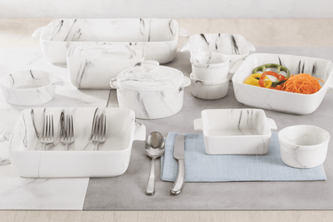 Add elegance and functionality to your kitchen with the Carrera Marble Effect Baking Dish Collection. Designed with a sleek marble finish, these versatile baking dishes are perfect for cooking, serving, and entertaining in style.