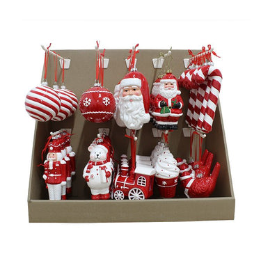 Assorted Character Ornaments – 42 Pieces in Peggable PDQ (Red & White, 9–15cm Height)