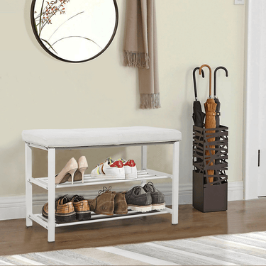 Shoe Rack Bench White/beige Nets Metal White Frame