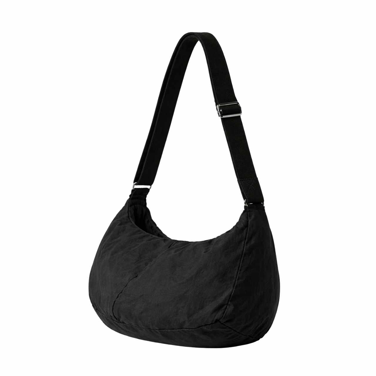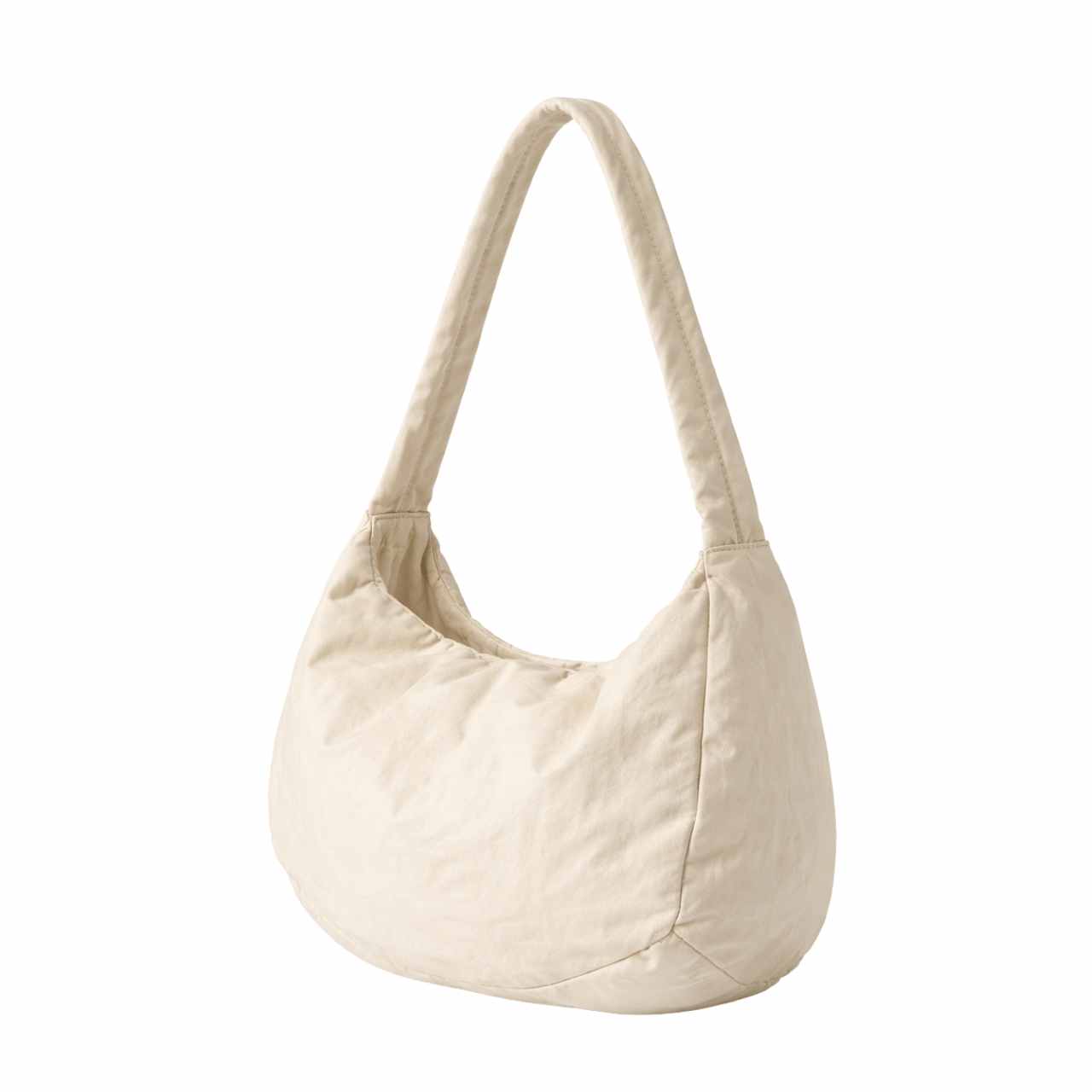 This soft shoulder bag features a rounded silhouette and a relaxed, effortless look. Crafted from a lightweight fabric with a smooth feel, it naturally contours to the body for all-day comfort. Its minimalist design makes it easy to pair with a wide range of outfits, from casual everyday looks to more urban styles.