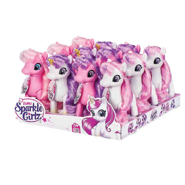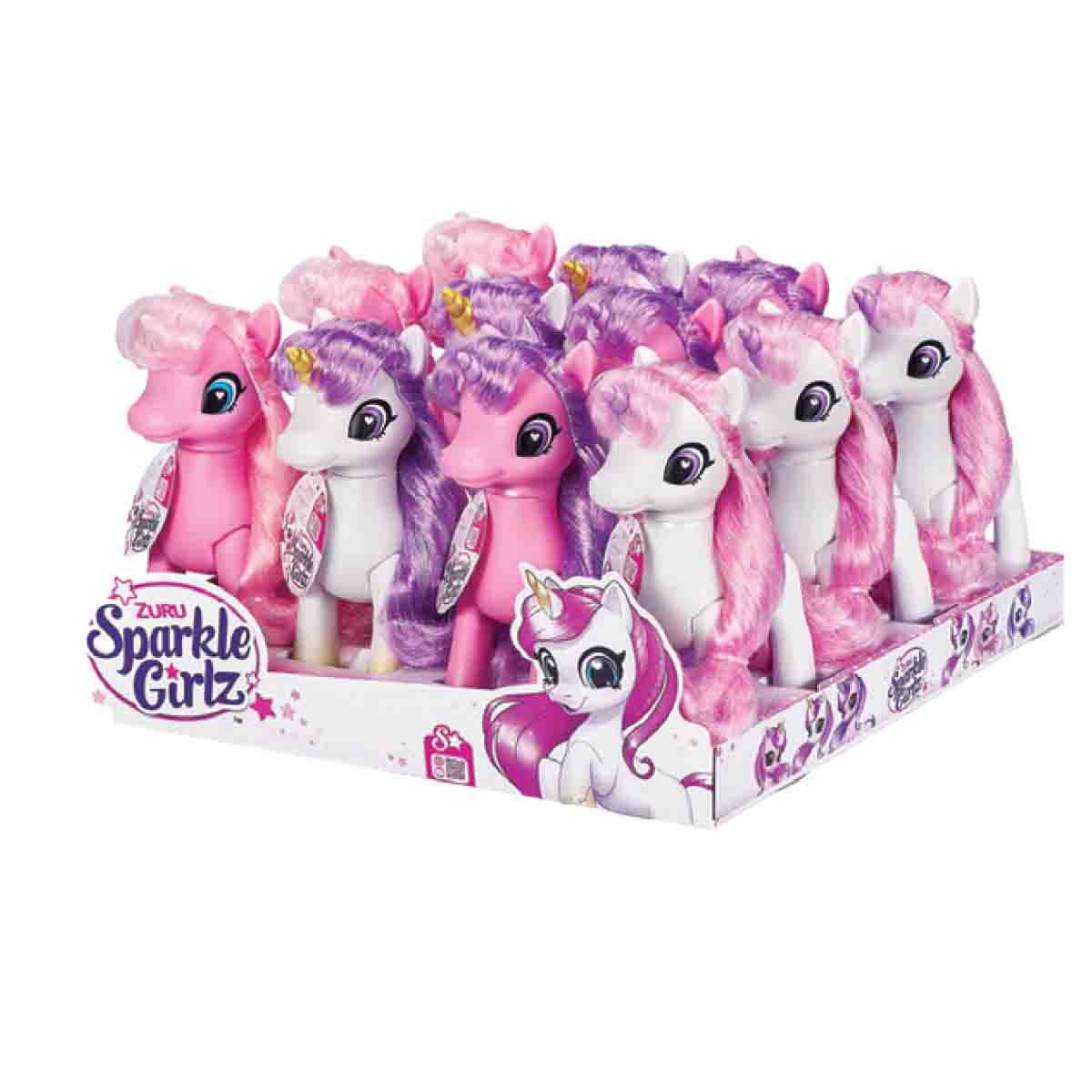The Sparkle Girlz Unicorns and Ponies collection is a lineup of adorable and colorful miniature toy horses. This collection of unicorns and ponies that are perfect for imaginative play, collecting, or as decorative items. This is an ideal for young children who love horses, unicorns, and other magical creatures. These toy animals encourage kids to role-play and engage in imaginative storytelling, which can promote language development, social skills, and cognitive abilities.
