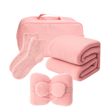 4-piece set: blanket, pillow, fuzzy socks, and travel bag