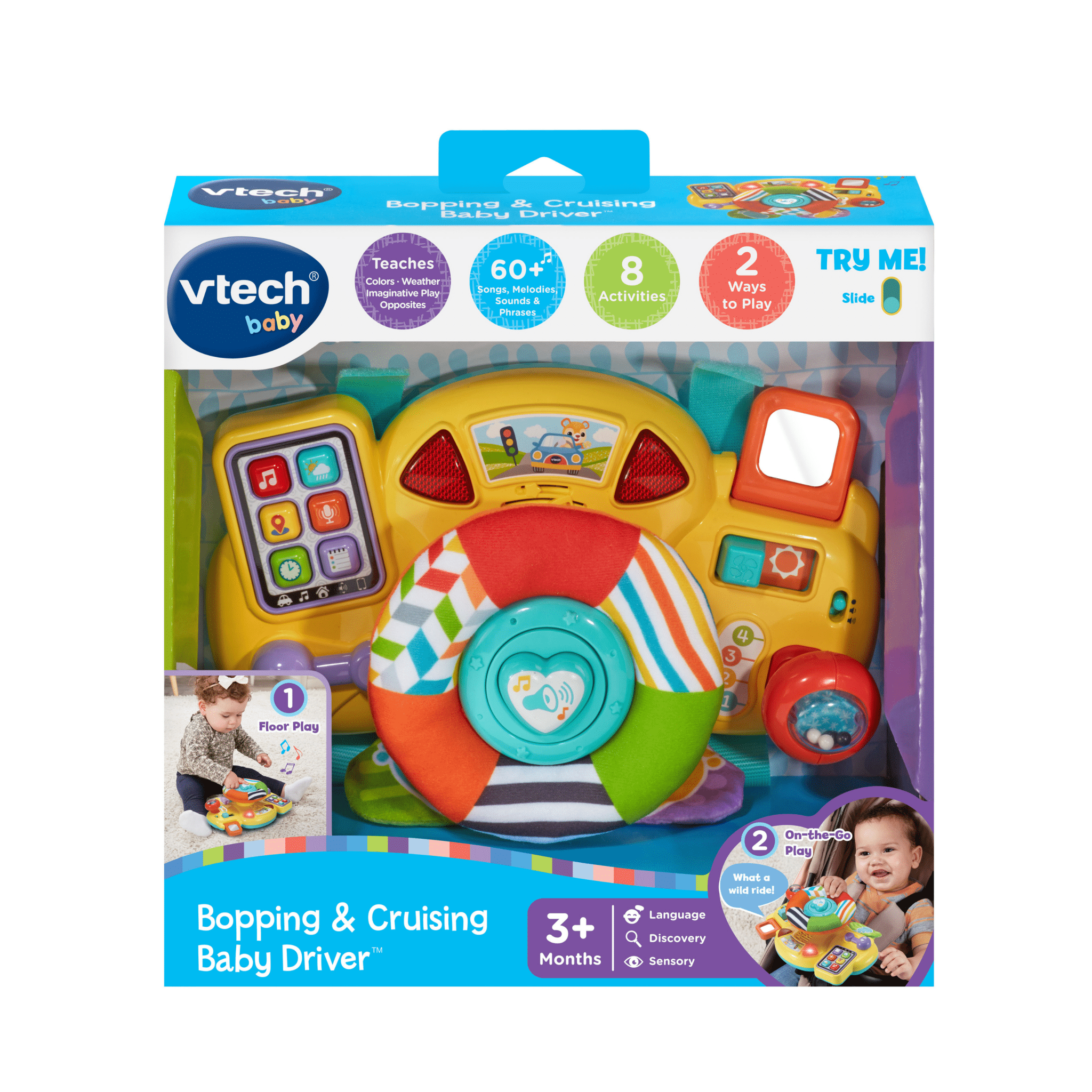 Stimulate your childβs senses and motor skills with the VTech Bopping & Cruising Baby Driver. This interactive toy features a colorful steering wheel and dashboard designed to engage and entertain babies and toddlers. The various buttons and moving parts provide tactile stimulation and help develop hand-eye coordination.