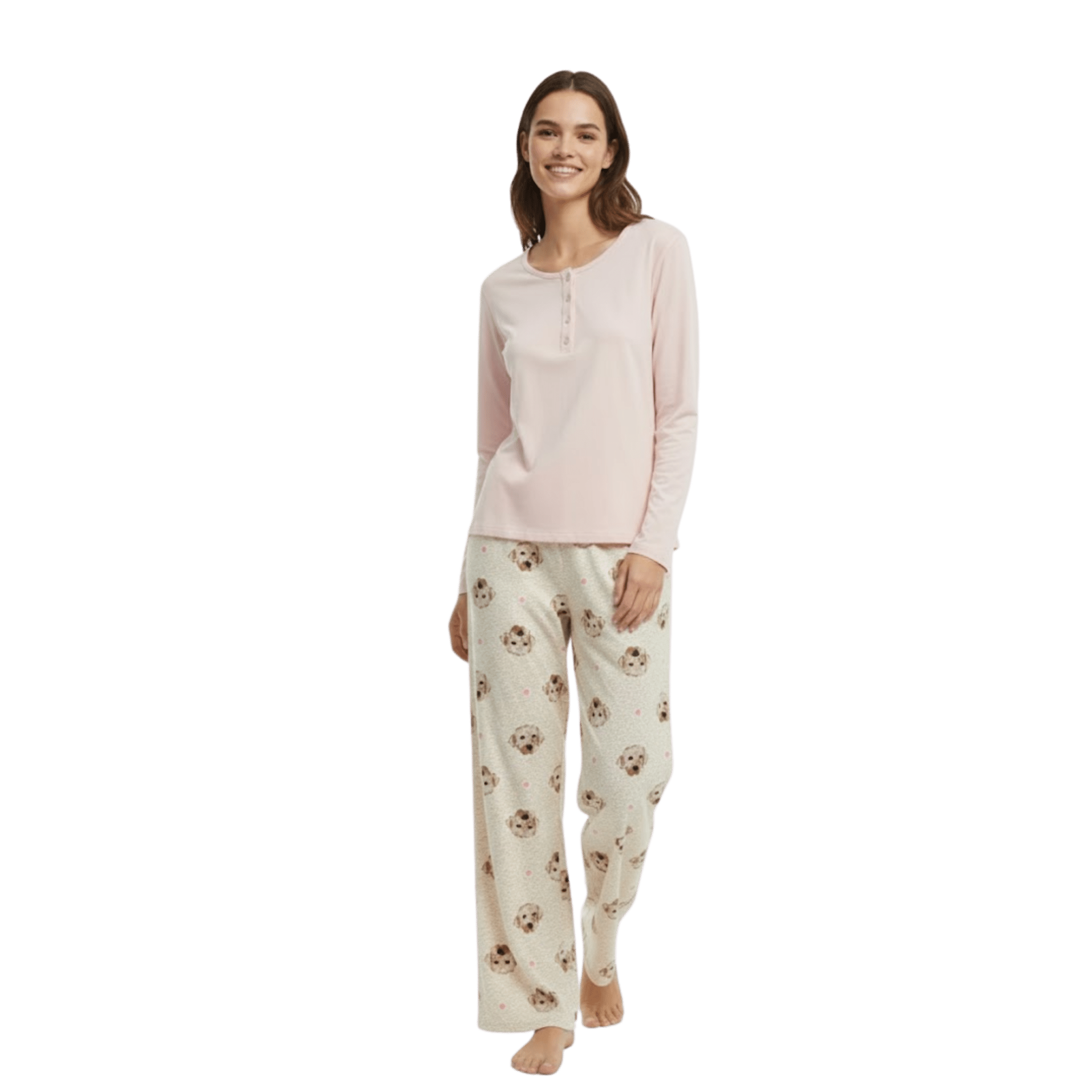 Choose from charming florals, playful motifs, and classic plaids—each design brings a touch of personality to your bedtime routine. The elastic waistband and relaxed straight-leg cut ensure total ease of movement, making this set a must-have for your everyday comfort rotation.