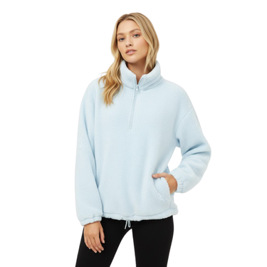 Wrap yourself in effortless warmth with this ultra-soft light-blue sherpa pullover. Designed with a relaxed silhouette, it offers a perfect blend of comfort and modern casual style. The half-zip neckline adds versatility—wear it zipped up for extra coziness or slightly open for a laid-back look. Its plush texture and adjustable hem make it an essential layer for cool mornings, weekend outings, or simply relaxing at home.